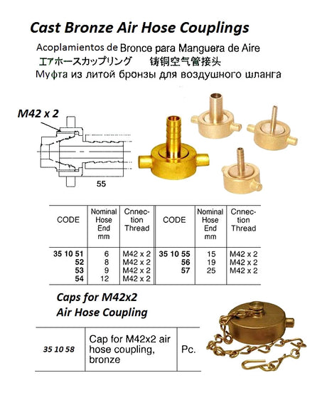 CONNECTION AIRHOSE CAST BRONZE, M42X2 BY HOSE END 6MM